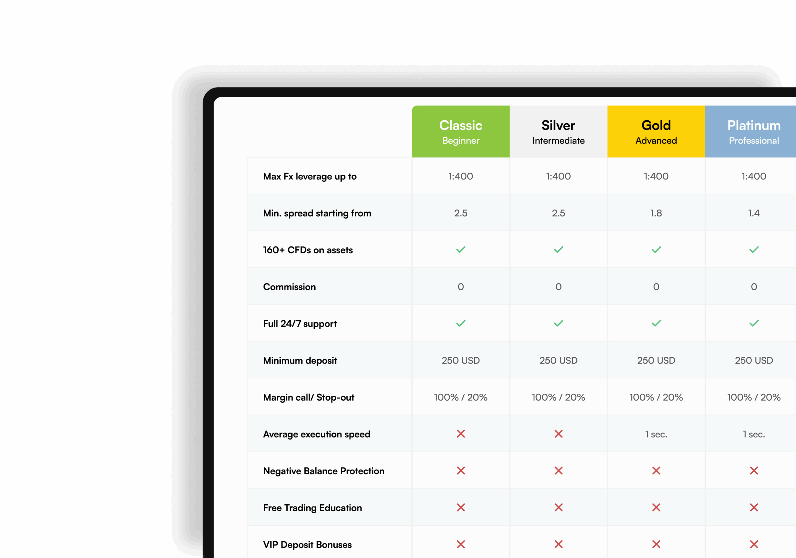 Unlock features that match your strategy, benefit from expert support and start trading with confidence.